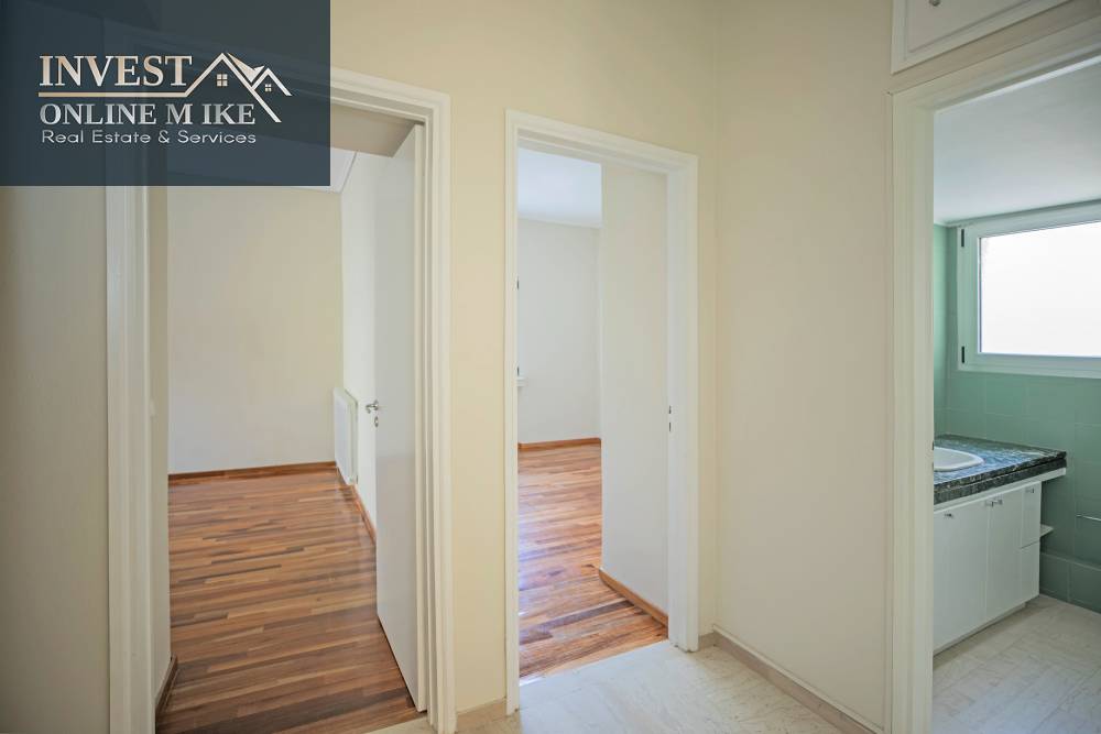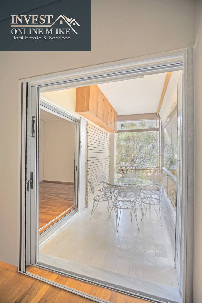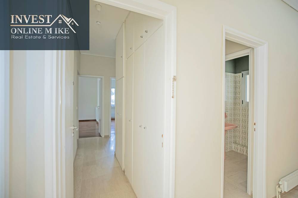 Χώροι & Διάταξη: 3 υπνοδωμάτια με μεγάλες εντοιχισμένες ντουλάπες, 1 επιπλέον δωμάτιο (ιδανικό για υπηρεσία, γραφείο ή φιλοξενούμενο), 2 μπάνια, Ευρύχωρη σαλοτραπεζαρία με τζάκι, Ανεξάρτητη κουζίνα, φωτεινή και λειτουργική, με άμεση σύνδεση στην τραπεζαρία για ευκολία στο σερβίρισμα, Άνετο χολ και εξαιρετική εσωτερική ροή, Μεγάλα μπαλκόνια με τέντες και πράσινη θέα. Οι εσωτερικοί χώροι είναι σε άριστη κατάσταση.